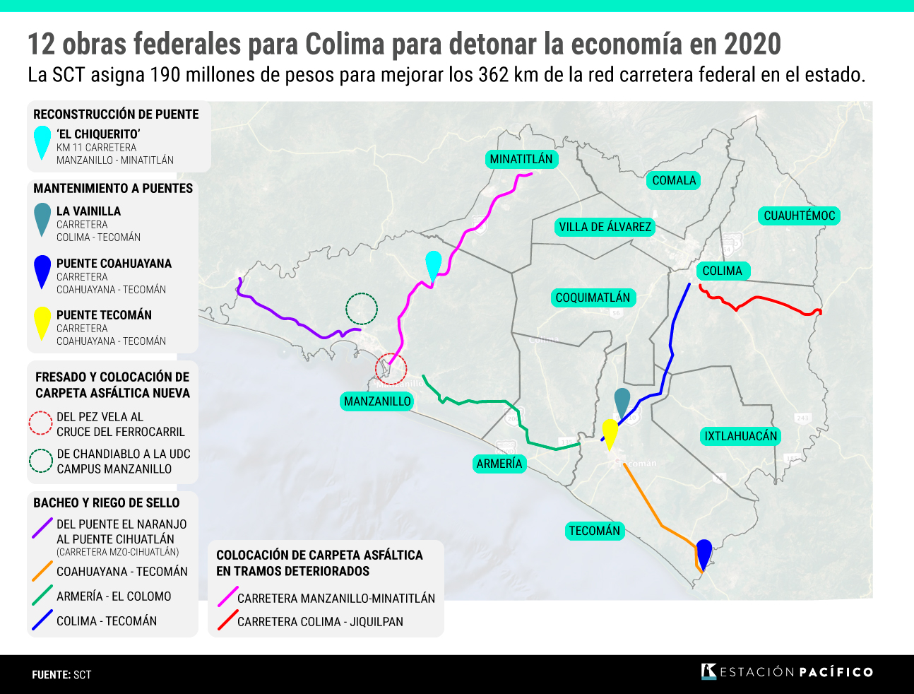 La SCT proyecta 190 mdp en 12 obras en Colima para detonar la economía en 2020